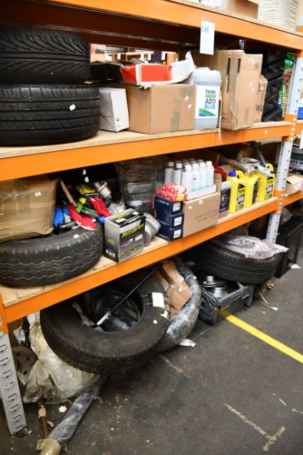A quantity of car and bike related items to include tyres, bike locks and coolant antifreeze.
