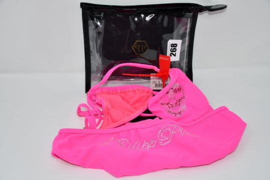 An as new Philipp Pleinj Skull bikini in fuchsia (Size 16 - RRP £105).