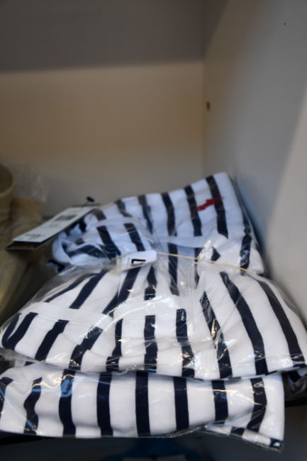 Four lady's as new Ralph Lauren Polo classic blue and white striped short sleeve V-neck t-shirts (Size 2 x S, 2 x XXS).