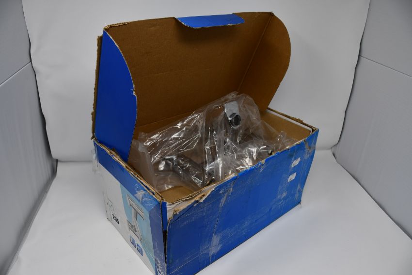 A pair of as new Tesi 2 - hole bath filler rim mounted chrome taps (Box unsealed and damaged).