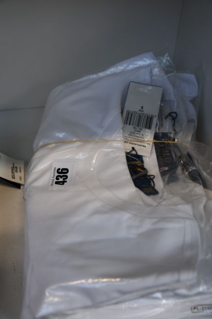 Four men's Ralph Lauren classics white round neck t-shirts (Size S).