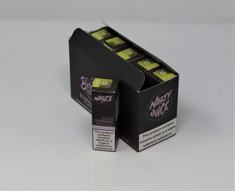 Ten boxed as new 10ml bottles of Stargazing Blueberry Nic Salt E-Liquid by Nasty Juice (2%/20mg nicotine) (Best before Aug 2022) (Over 18's only).