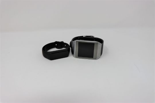 Two pre-owned Samsung Smartwatches: a Galaxy Fit E SM-R375 and a Samsung Gear SM-V700.