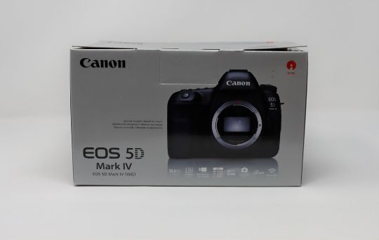 A boxed as new Canon EOS 5D Mark IV (WG) 30.4MP Digital SLR Camera (Body only) (Significant cosmetic damage to box - appears to be water damage.Contents appear in brand new, undamaged condition).