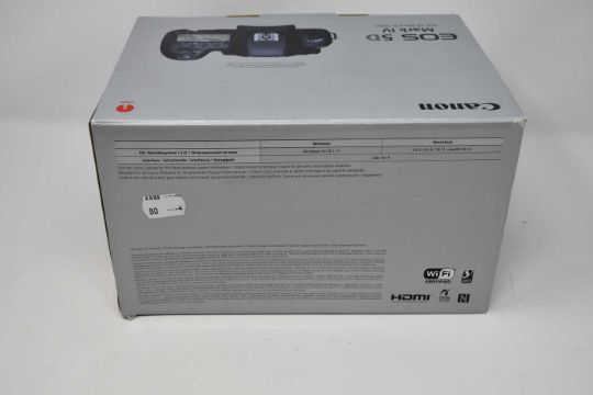 A boxed as new Canon EOS 5D Mark IV (WG) 30.4MP Digital SLR Camera (Body only) (Some light cosmetic damage to box).
