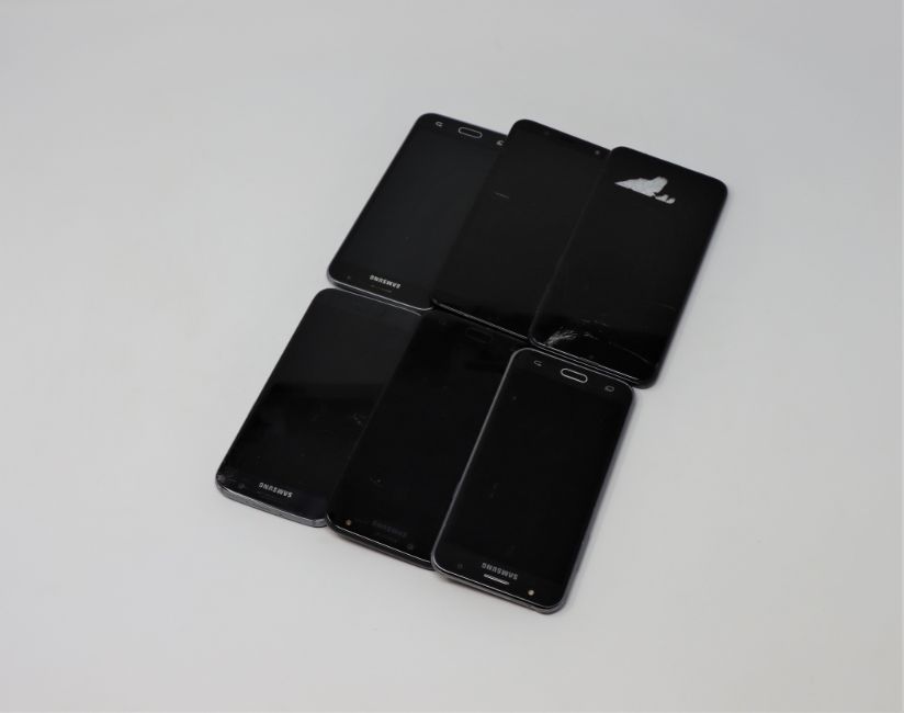 Six pre-owed Samsung smartphones sold for parts; 1 x Galaxy A10 SM-A105M/DS 1 x Galaxy S7 SM-G930T, 2 x Galaxy J5 SM-J500FN, 1 x Galaxy J6 SM-J600FN, 1 x Samsung Galaxy J5 2017 SM-J530F (All with damaged screen glass and/or other damages).