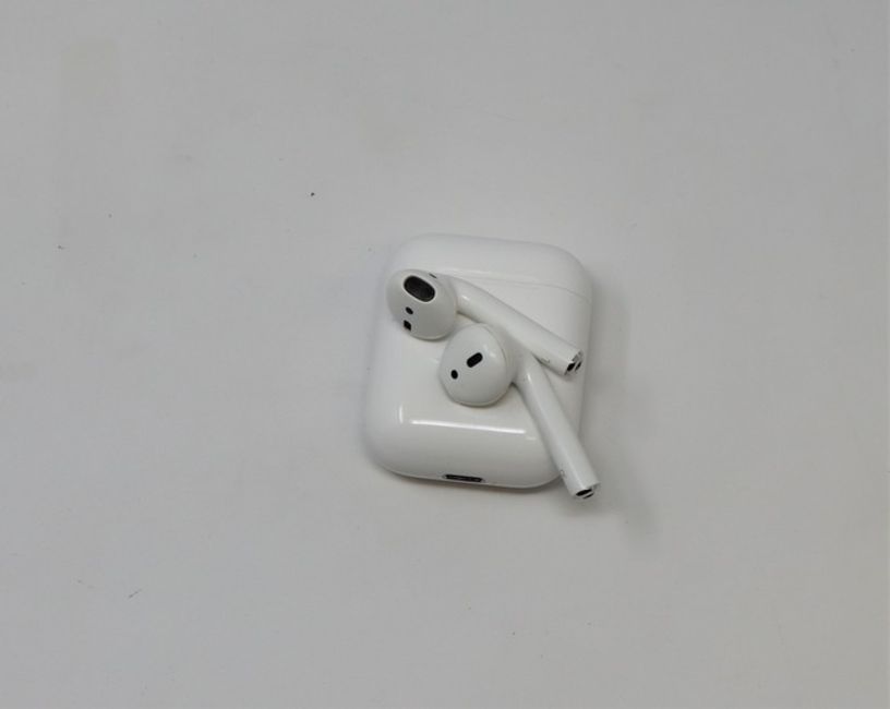 A pre-owned pair of Apple AirPods (1st Gen) with Wireless Charging Case (Some cosmetic marks).