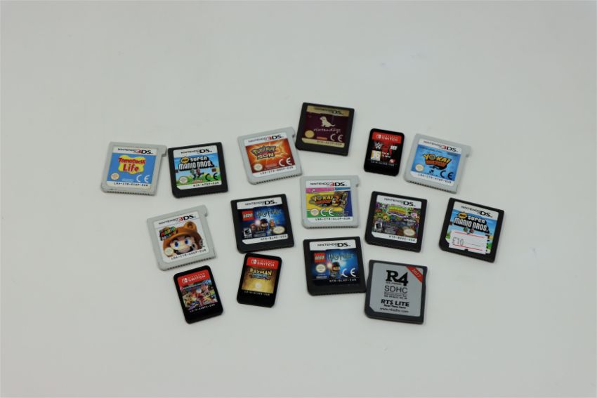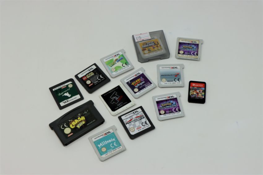 Twenty six assorted pre-owned Nintendo game cards for Gameboy, DS, 3DS and Switch.