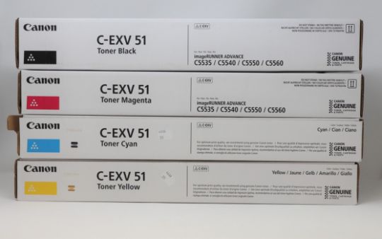 Four boxed as new Canon C-EXV 51 Toner cartridges (boxes sealed) - 1x Magenta, 1x Cyan, 1x Yellow, 1x Black.