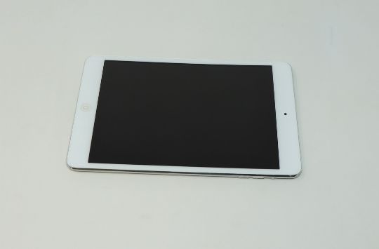 A pre-owned Apple iPad mini Wi-Fi Only/1st Gen 16GB in white (Serial: F85LL597F196) (iCloud activation clear).