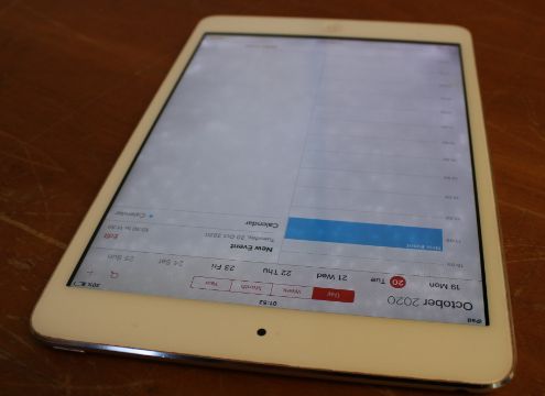A pre owned Apple iPad mini Wifi Only/1st Gen 16GB in white, cosmetic damage to casing, faulty display/water damage (Serial: F7QMM8CQF196) (iCloud activation clear).