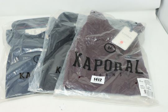 One men's as new Kaporal woven navy long sleeved shirt size L. One men's as new Kaporal woven black long sleeved shirt size L. One men's as new Kaporal knitted burgundy sweater size M.