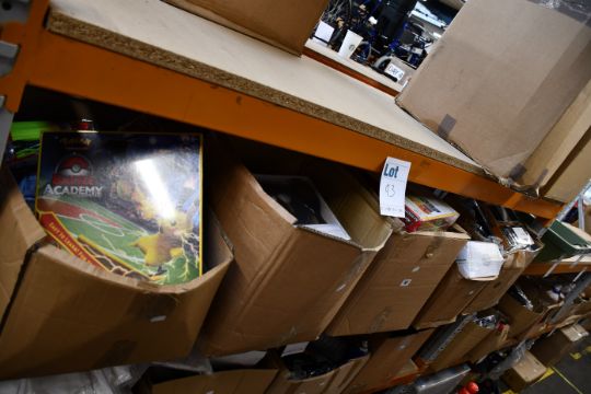 Four boxes of miscellaneous items to include one Pokemon Battle Academy card game, one Lloytron LED storm lamp and one Duratool 35 pack hobby knife set.