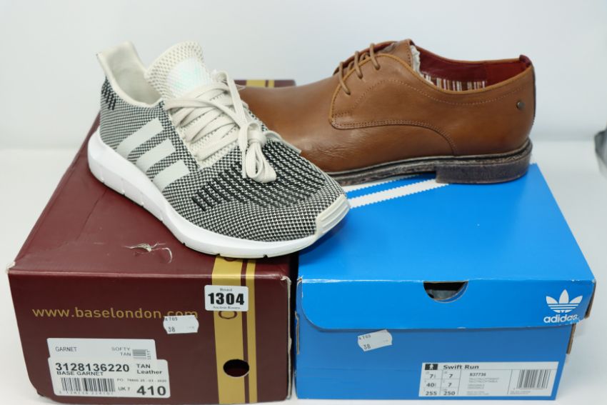 One as new Adidas Swift run trainers size UK 7 (B37736). One as new Base London Garnet shoes size UK 7 (3128136220).