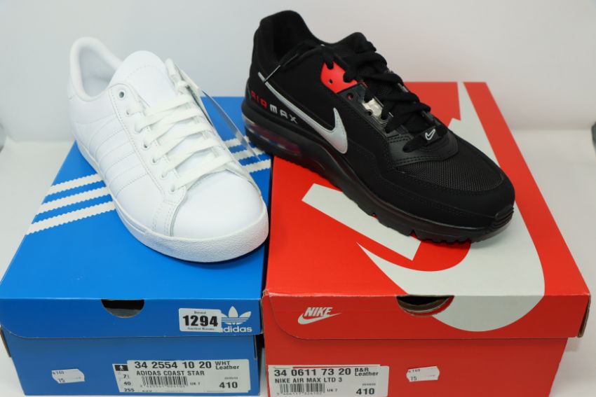 One as new Adidas white coast star trainers size UK 7 (3425541020). One as new Nike black & red Air Max Ltd 3 trainers size UK 7 (3406117320).