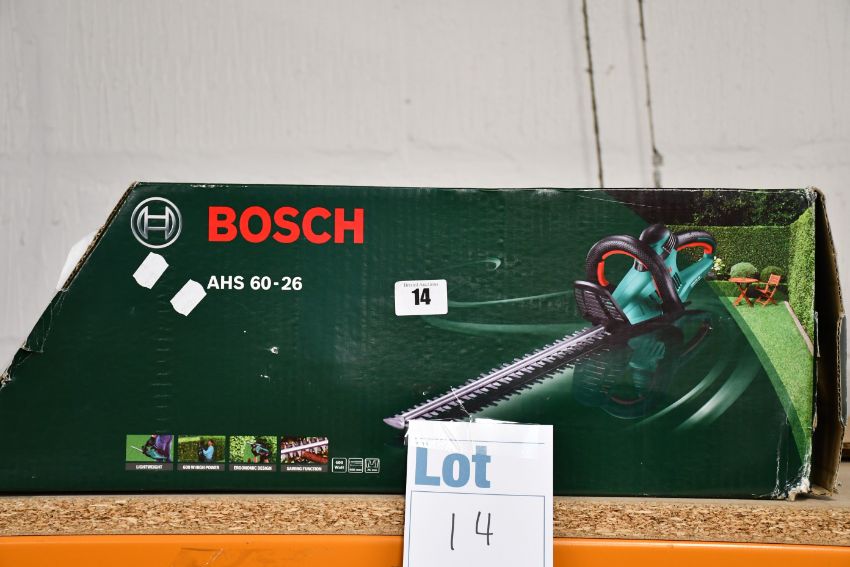 One boxed Bosch AHS 60-26 electric corded hedge trimmer.