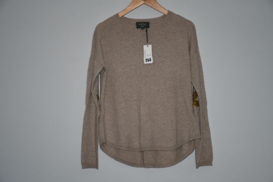 An as new Wyse of London beige jumper with gold sequin star to the elbow of sleeve (Size 1).