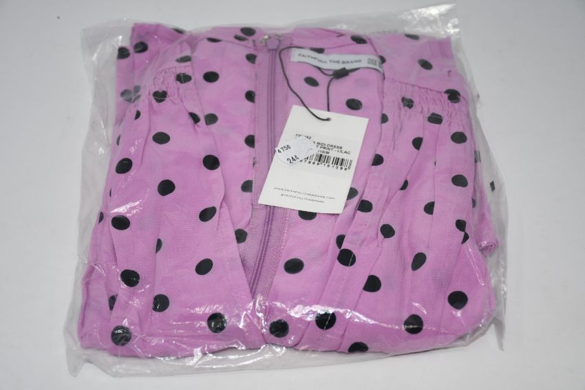 One as new Faithfull The Brand Vittoria Midi Dress Sylve Dot Lilac size M. One Faithfull The Brand yellow totebag.