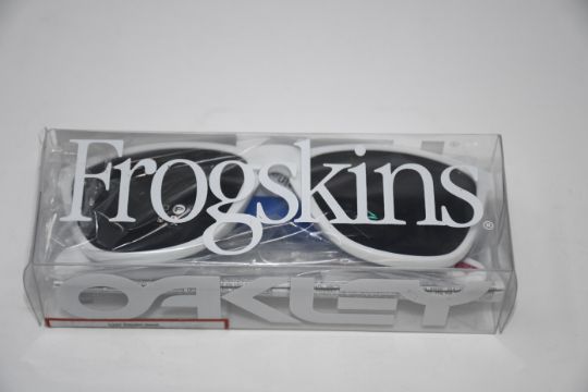 One boxed Oakley Frogskins 35th anniversary. Frame: polished white. Lens: prizm grey. (Damaged packaging).