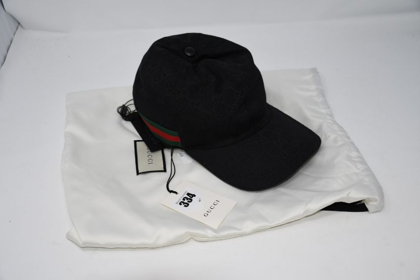 One as new Gucci Original GG canvas baseball hat with Web. Colour: black.