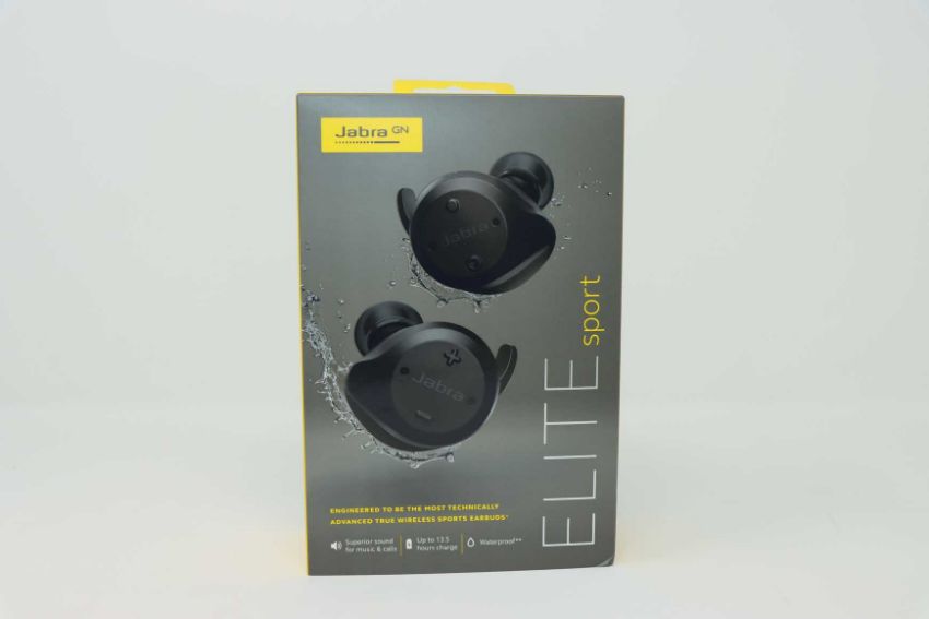 A boxed as new pair of Jabra Elite Sport True Wireless Waterproof Bluetooth In-Ear Headphones with Mic/Remote in Black (Box sealed).