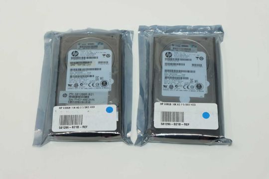 Two refurbished HP 581286-B21 600GB 10K RPM 6Gbps SAS 2.5 Inch Hard Drives (Packaging sealed).