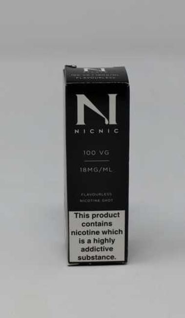 One hundred and twenty boxed as new 10ml bottles of Nic Nic Nicotine Shot (18mg/ml - 100% VG) (Best before: 02/22) (Over 18's only).