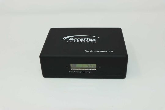 An AccelTex The Accelerator 2.0 Site Survey Battery Pack with carry case, 2.1mm male-to-male connector (12V output), USB-C male-to-male cable, and storage case (No wall charger included, some cosmetic damage to stoage case).