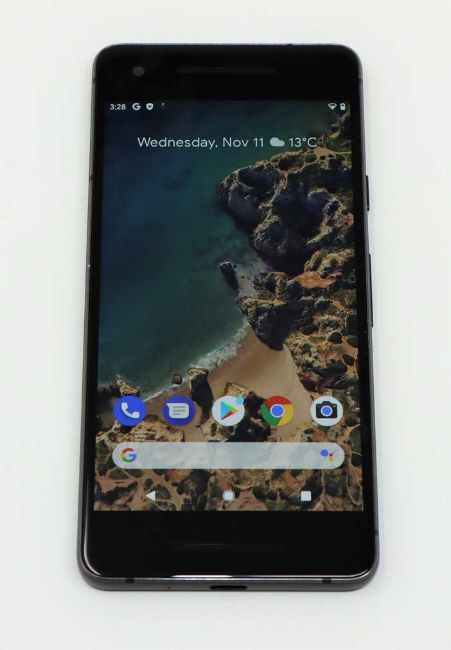 A pre-owned Google Pixel 2 G011A 128GB in Just Black (FRP clear, Blacklist clean. Checkmend report ID: CM16467914-5F998) (Box and accessories included, UK plug adaptor required).