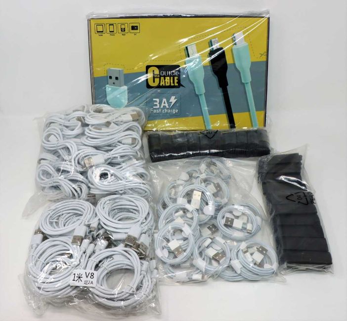 A quantity of assorted as new USB charging cables; 150 x USB to USB-C, 50 x USB to Lightning and 20 x USB to Micro USB.