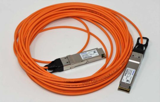 A Finisar 40G QSFP+ 10m Active Optical Cable (P/N: FCBN410QB1C10) (Packaging opened. Sold as seen).
