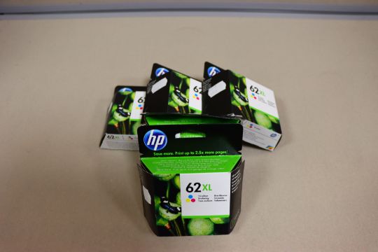 Five boxed as new HP 62XL Tri-Colour ink cartridges.