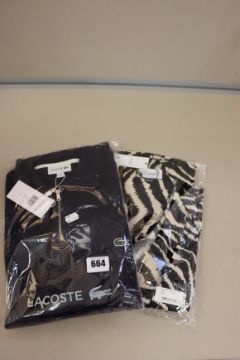 One as new Lacoste 1/2 Zip Sweat size US XXL (Colour: navy. Model: SH1927). One Closet London Short Sleeve Wrap Dress size 16 (Model: D6312).