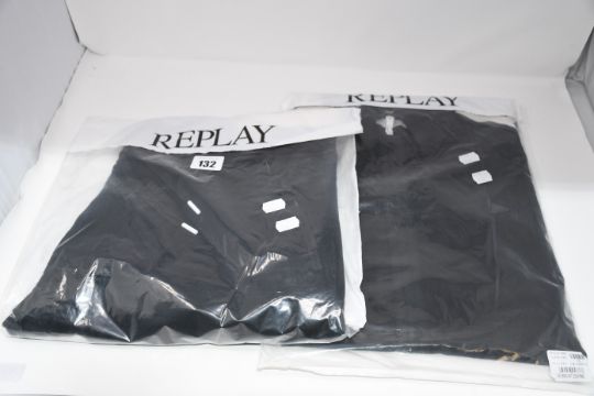 One man's Replay Sportlab sweatshirt with collar in black (XXL) and one pair of man's Sportlab cotton trousers in black (XXL), both as new.