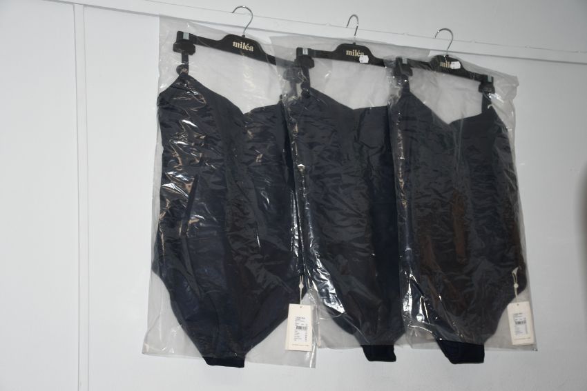 Three as new Milea Mini Rib DD/E Maillot swimsuits. Colour: ink. 2 x size 14, 1 x size 16 (1284E - RIB).