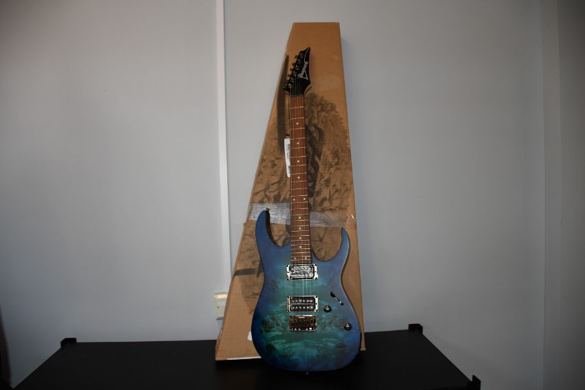 One boxed as new Ibanez RG421PB CHF Carribean Shoreline flat electric guitar.