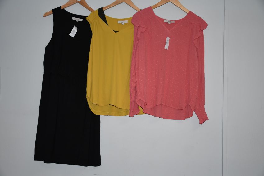 One as new Loft Clip Dot Smocked Ruffle Blouse in Chalk Rose size M. One as new Loft Smocked Trim Shell size M. One as new Loft Women's Black Scalloped Wrap Back Ponte Dress size 10. One as new Loft Square Neck Tank Top size M.