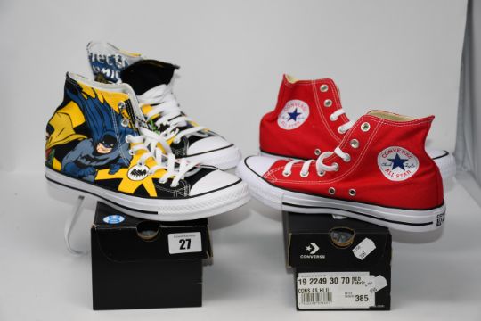 One as new Converse x Batman Chuck Taylor All Star High Top size UK 9. One as new Converse Red all star hi trainers size UK 5.5.
