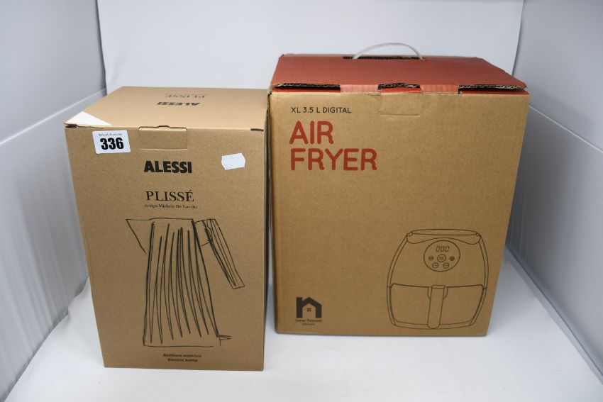 One Alessi Plisse electric kettle in white and one New House Kitchen Air Fryer XL (3.5ltr digital).