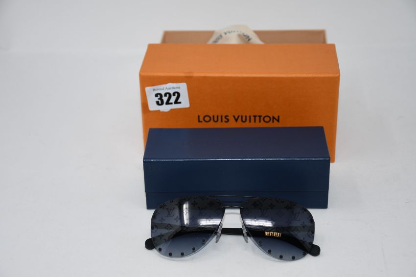A pair of pre-owned Louis Vuitton sunglasses with case and box.
