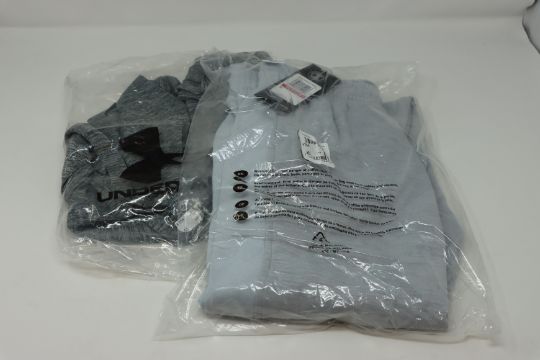 One as new Under Armour Men's UA Tech 2.0 Full Zip Hoodie size XS (Colour: grey). One as new Under Armour Men's UA Double Knit Joggers size XS (Colour: light grey).