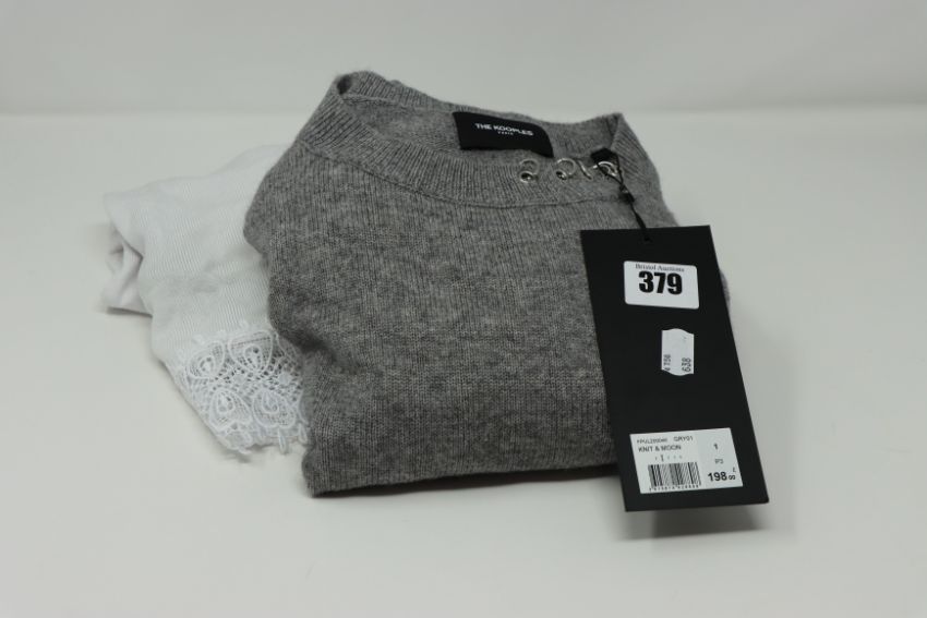 One as new Kooples X-Sport Women's white lace-trim Sweater size 1. One as new Kooples Knit-&-Moon Knitwear grey Sweater size 1.