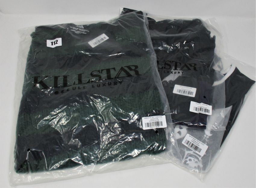 One as new Killstar Absinthe Knit sweater size XS. One as new Killstar Umbra leggings size XL. One as new Killstar Severin leggings size XL.