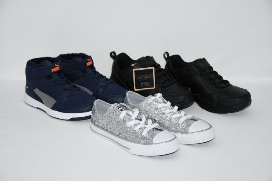 One as new Puma Kids Rebound Layup Fur SD V PS size UK kids 12. One as new Converse All Star Lo Glitter size UK kids 13. One as new Skechers Girls' Glimmer Kicks School Struts size UK 2.