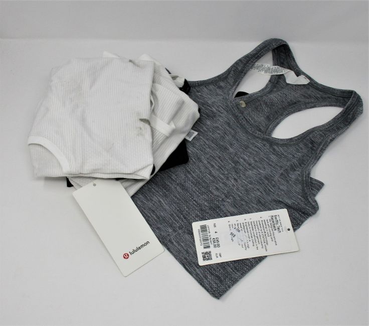 One as new white Swifty Tech Racerback 2.0 size 6 (some marks on the front. Security tag attached). Two as new white Swifty Tech Racerback 2.0 size 4 (some marks on the front. Security tag attached). One as new black Swifty Tech Racerback 2.0 size 10 (some marks on the front. Security tag attached). One as new grey Swifty Tech Racerback size 4 (some marks on the front. Security tag attached).