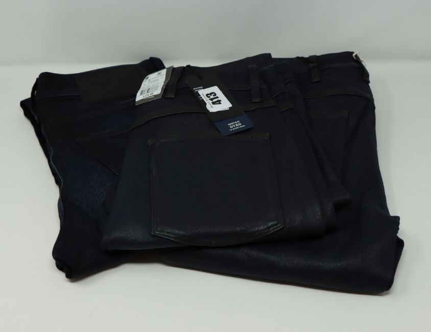 Two as new G Raw Knee zip high women skinny jeans (Colour: Worn in tidal cobler. Size 27/32. Model: 5622). One as new G Raw High women skinny jeans (Colour: Dark aged. Size 27/32. Model: 3301).