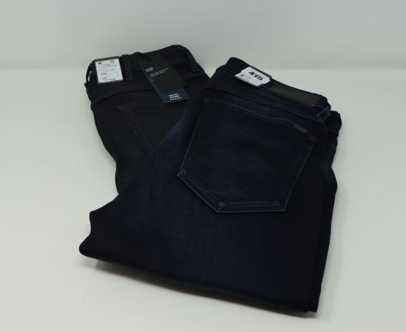 One as new G Raw Knee zip high women skinny jeans (Colour: Worn in tidal cobler. Size 27/32. Model: 5622). One as new G Raw High women skinny jeans (Colour: Dark aged. Size 27/34. Model: 3301).