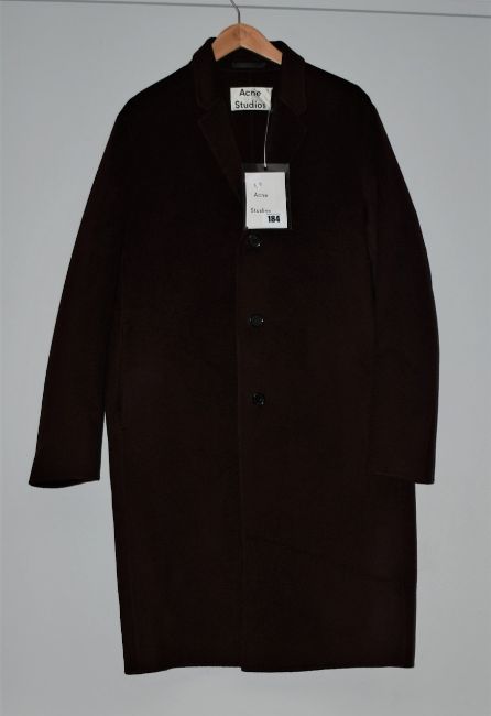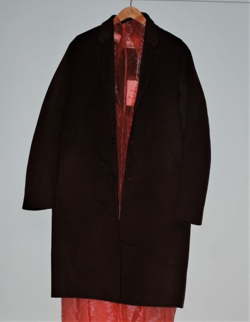 One as new Acne Studios red/white tulle tunic (size unknown). One as new Maroon red Double-faced wool coat (size unknown. FN-MN-OUTW000264).
