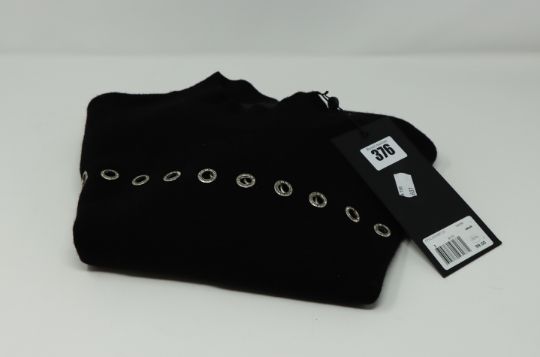One as new Kooples X-Sport Merino Formal Wool Black Sweater With Grommets size 2 (FPUL20008K).