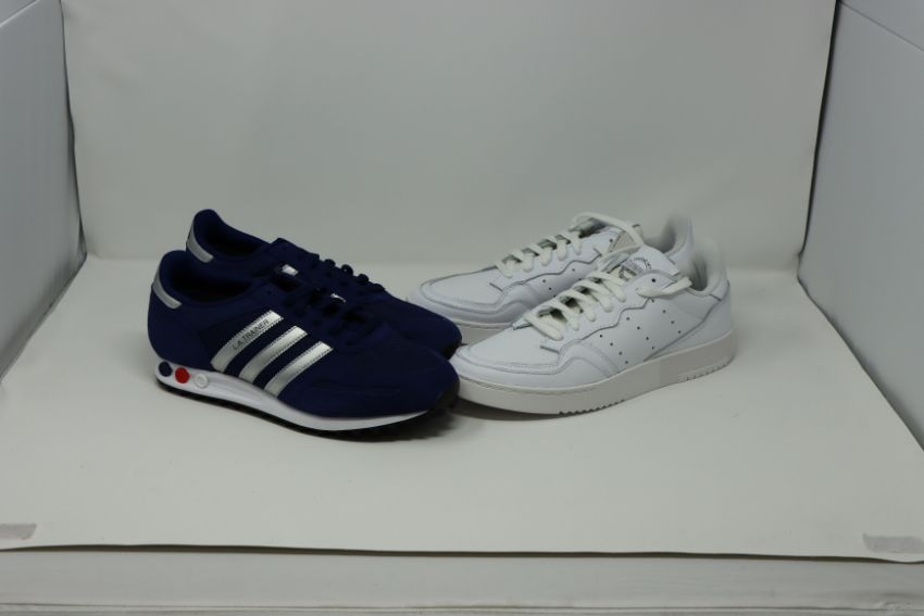 One as new Adidas La Trainer size UK 8 (FX0253). One as new Adidas Supercourt size 8 (EE6037).
